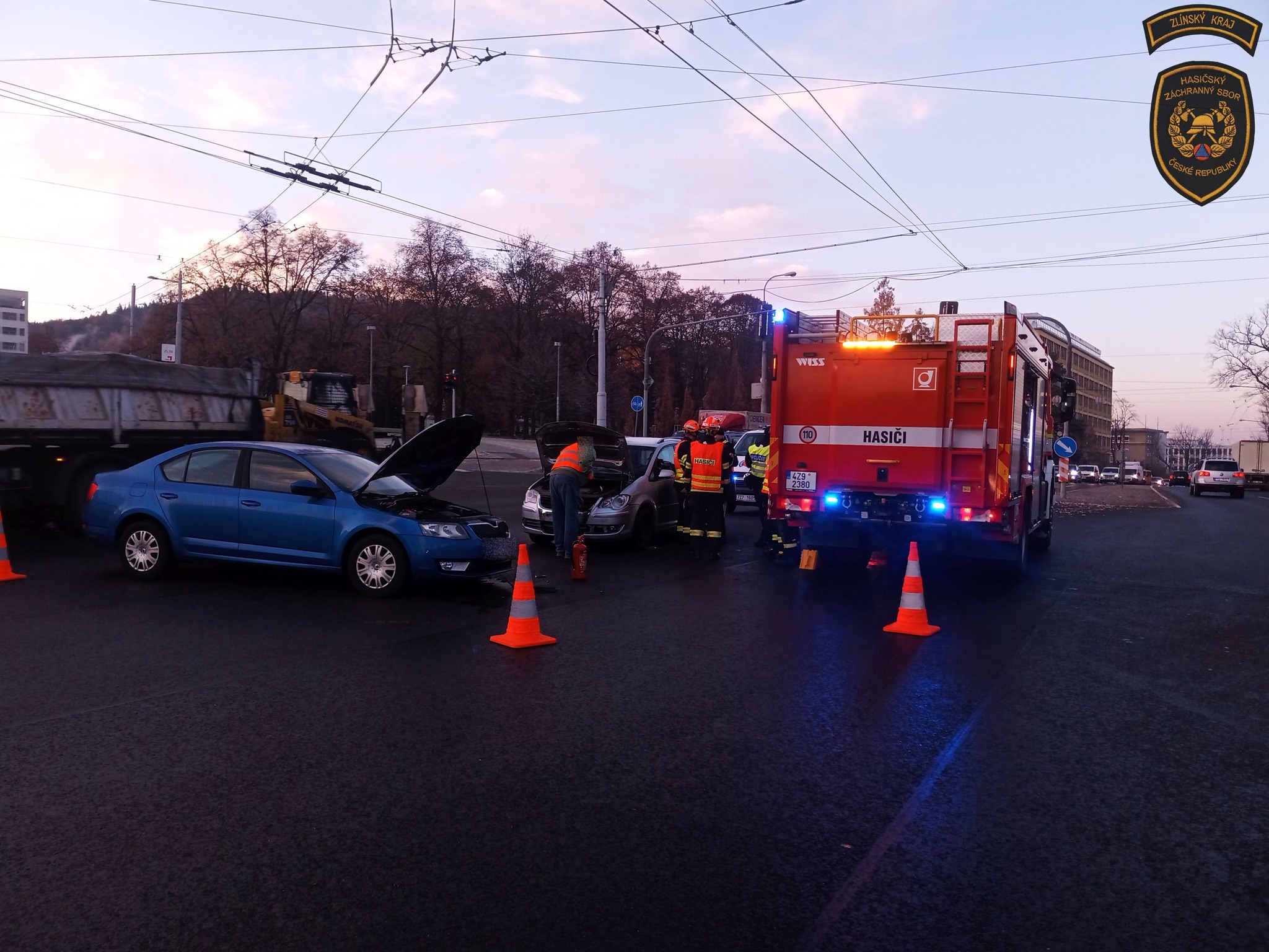 „Hasiči u rozbitých vozidel provedli protipožární opatření a v případě potřeby zasypali sorbentem uniklé provozní kapaliny,“ informovala mluvčí krajských hasičů Lucie Javoříková.
