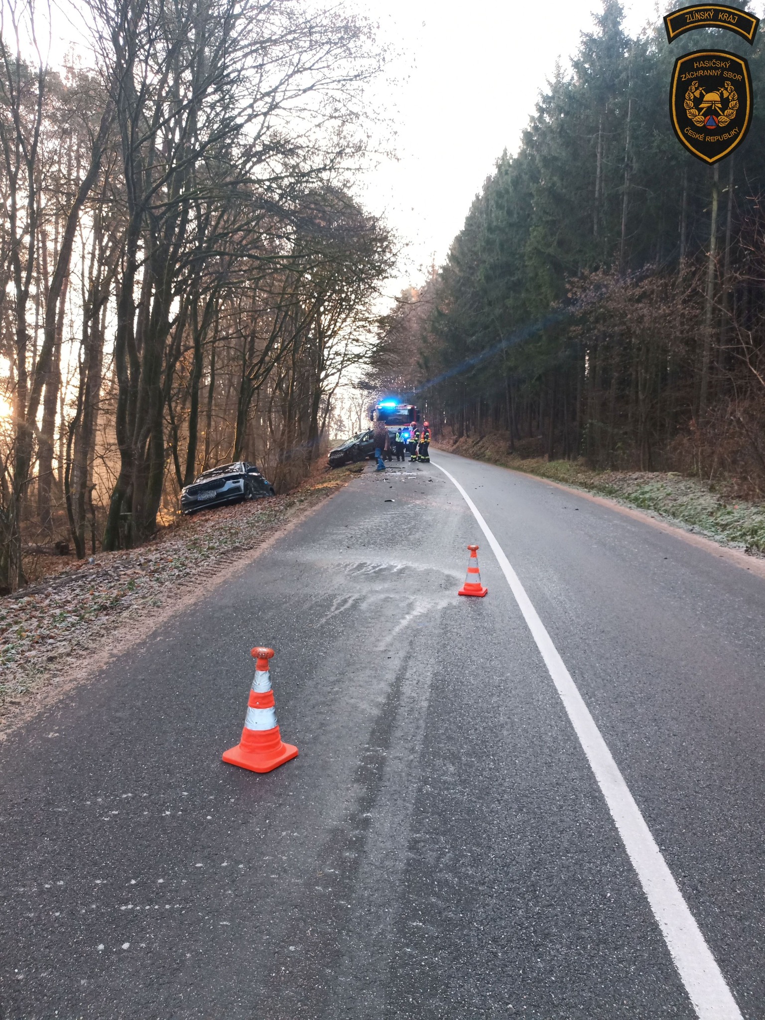 Během dopoledne tak hasiči zasahovali celkem u 11 dopravních nehod. Jedna z nich byla v rámci mezikrajské výpomoci na Přerovsku u obce Zámrsky.