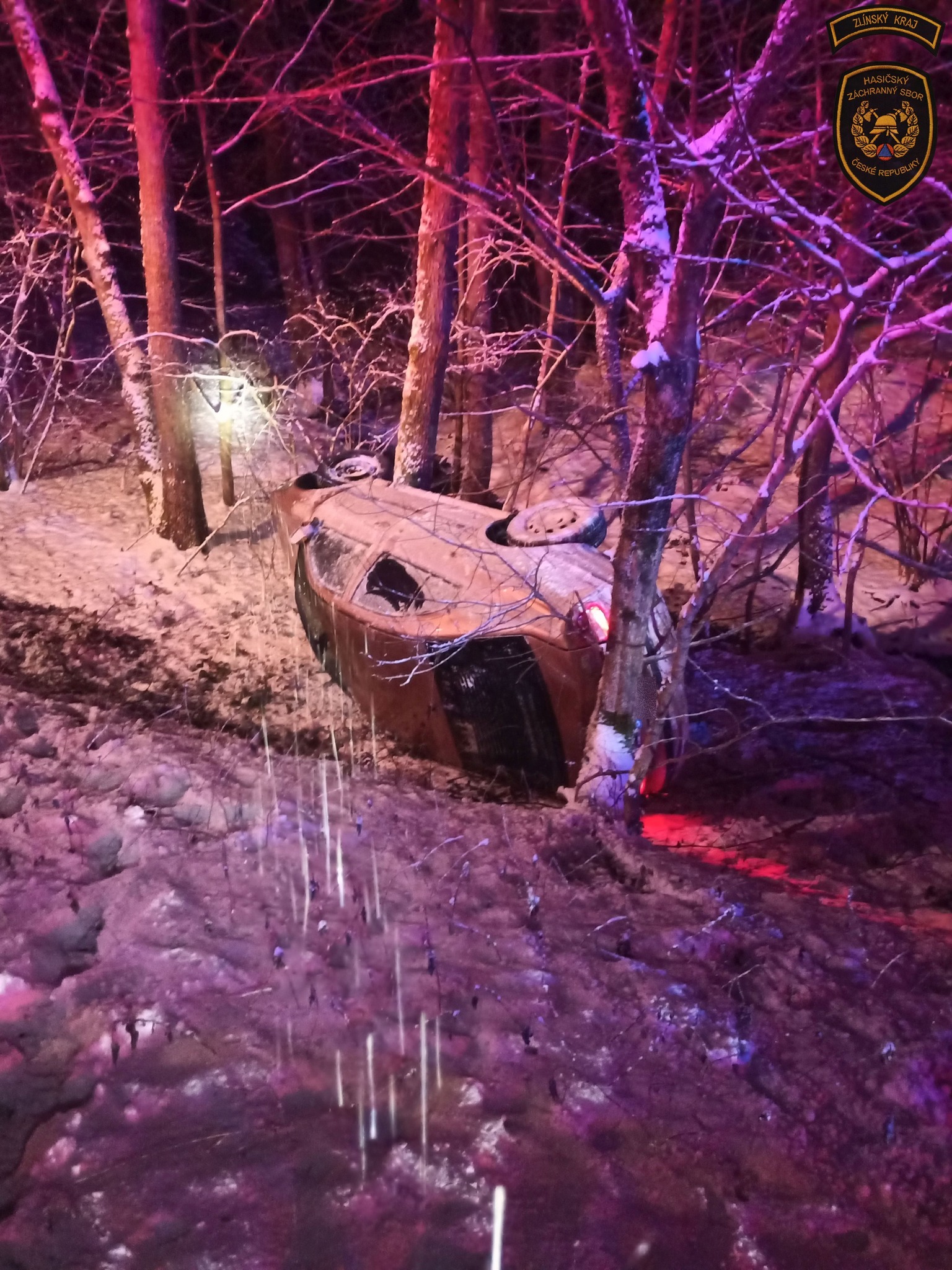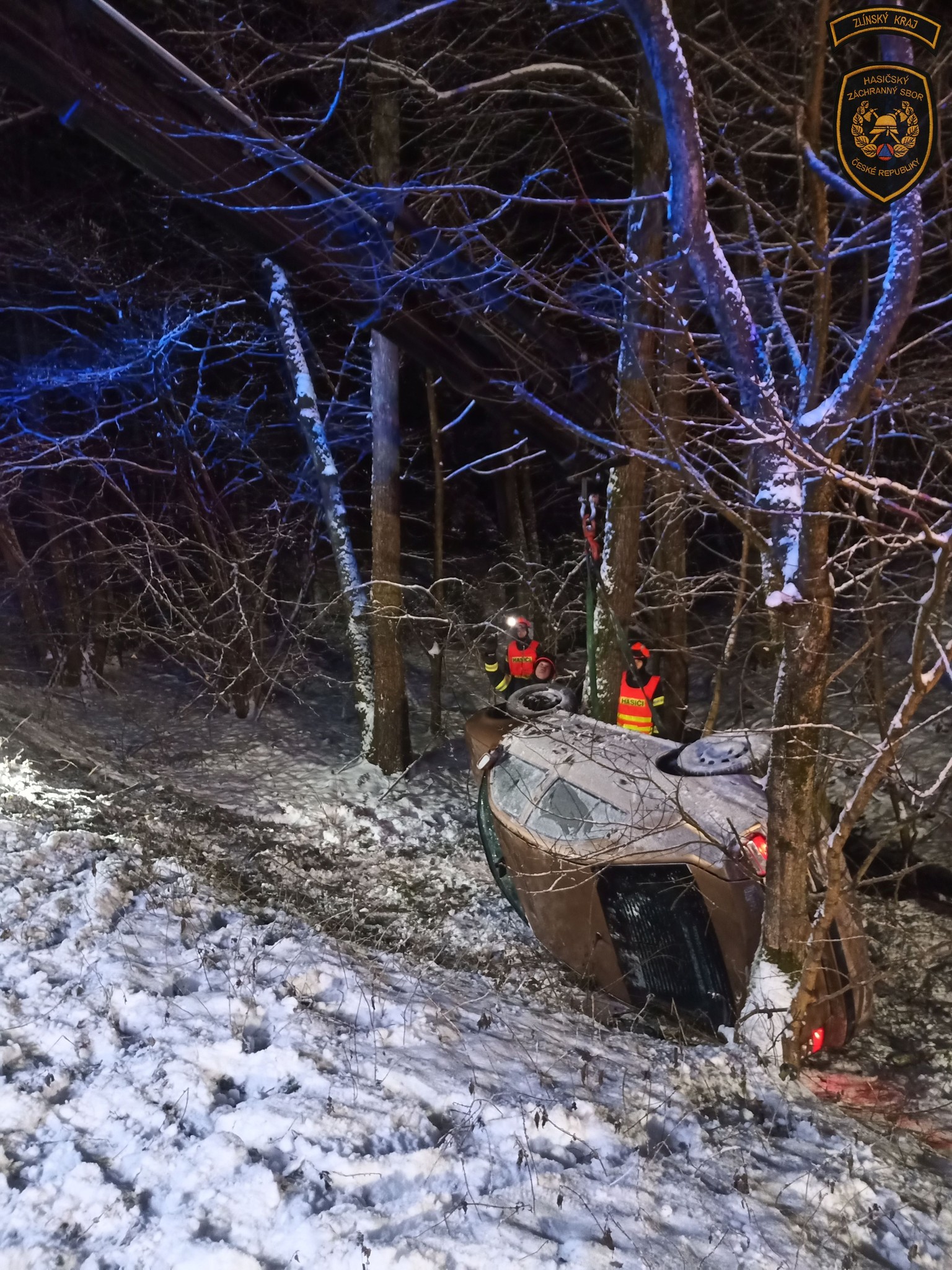 „Po příjezdu hasiči vozidlo stabilizovali proti pohybu a velitel zásahu si povolal kolegy s vyprošťovacím automobilem. Pomocí něj havarovaný vůz vytáhli zpět na cestu,“ informovala mluvčí krajských hasičů Lucie Javoříková s tím, že zraněný řidič skončil v nemocnici.