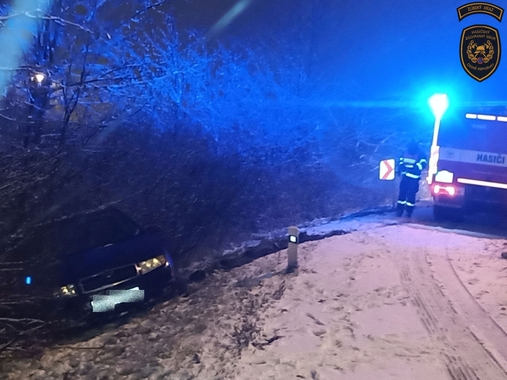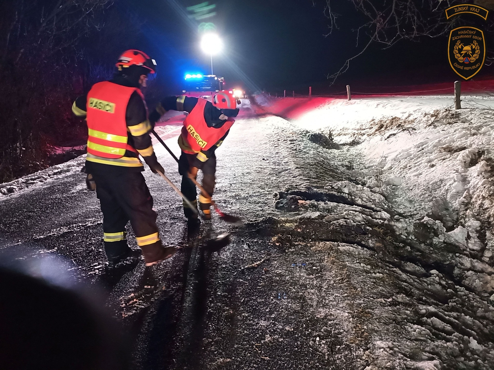 K první vyjížděli po čtvrté hodině ranní do Zádveřic-Rakové na Zlínsku, kde řidič se svým autem sjel mimo cestu.