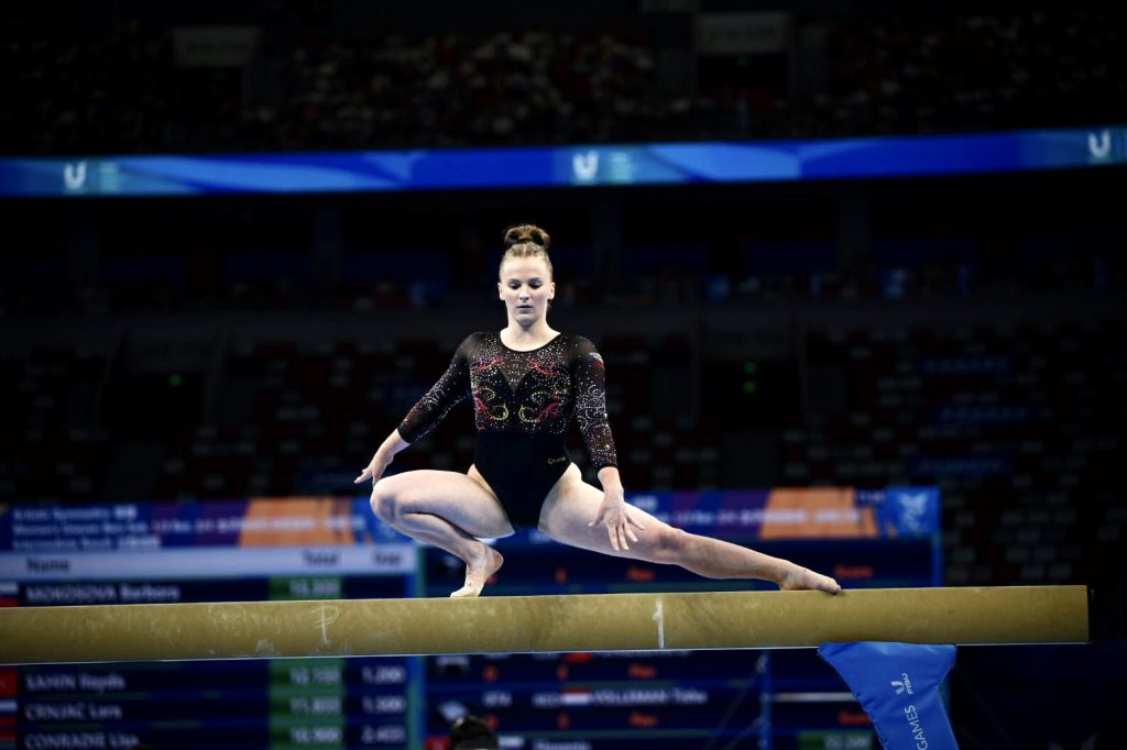 Dominika Ponížilová do Číny odletěla v pátek 28. července a do sportovní vesnice dorazila až v neděli 30. července. Cesta byla opravdu dlouhá, ale nebyl čas se z ní dlouho vzpamatovávat. Hned ráno v neděli absolvovala první trénink. Mezi tréninky a prvními závody měla však pár dní, které využila na precizní přípravu, a především na zvyknutí si na jiné nářadí a úplně jiný povrch. A jak bylo vidět, příprava a celková koncentrace se Dominice nakonec vyplatila.