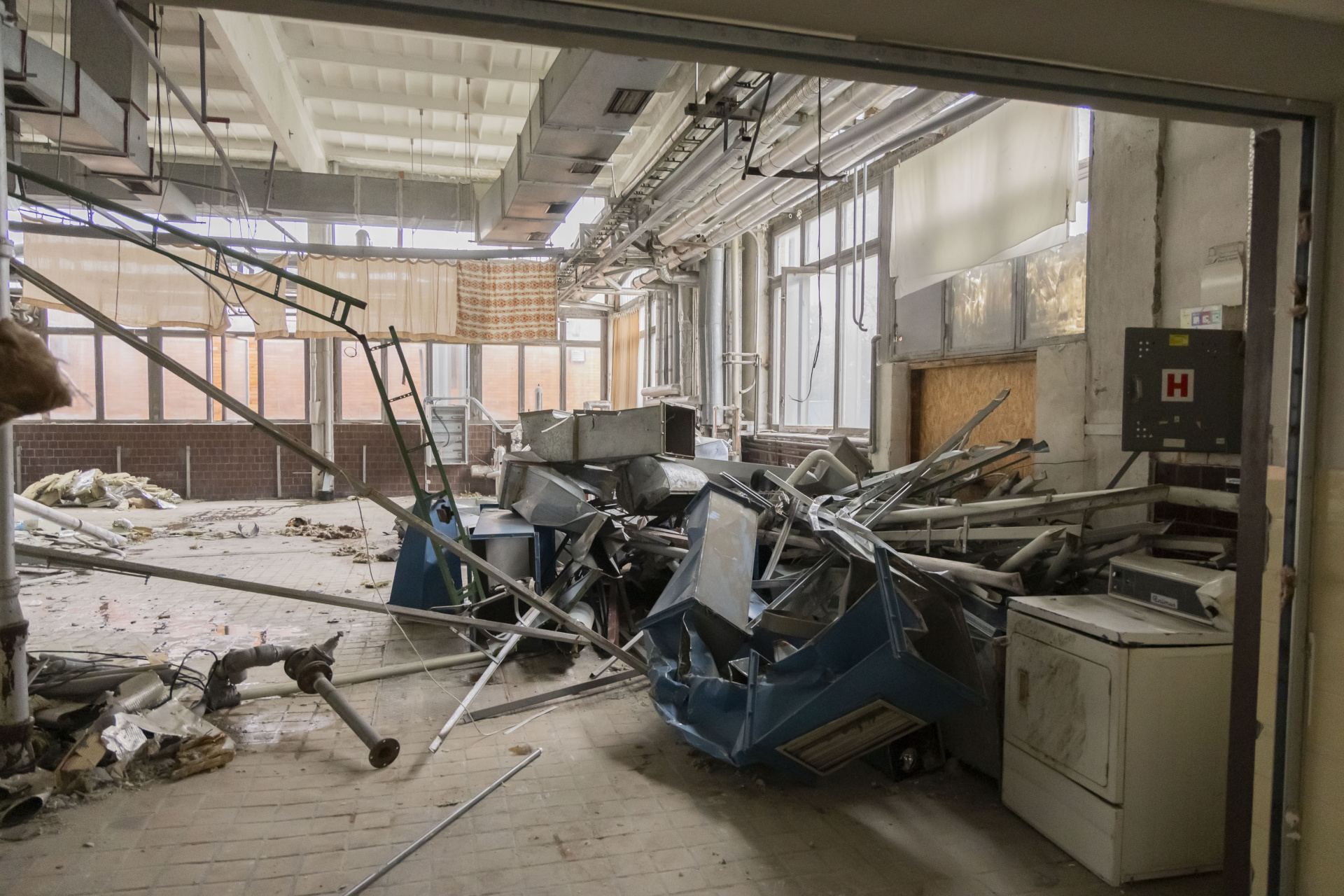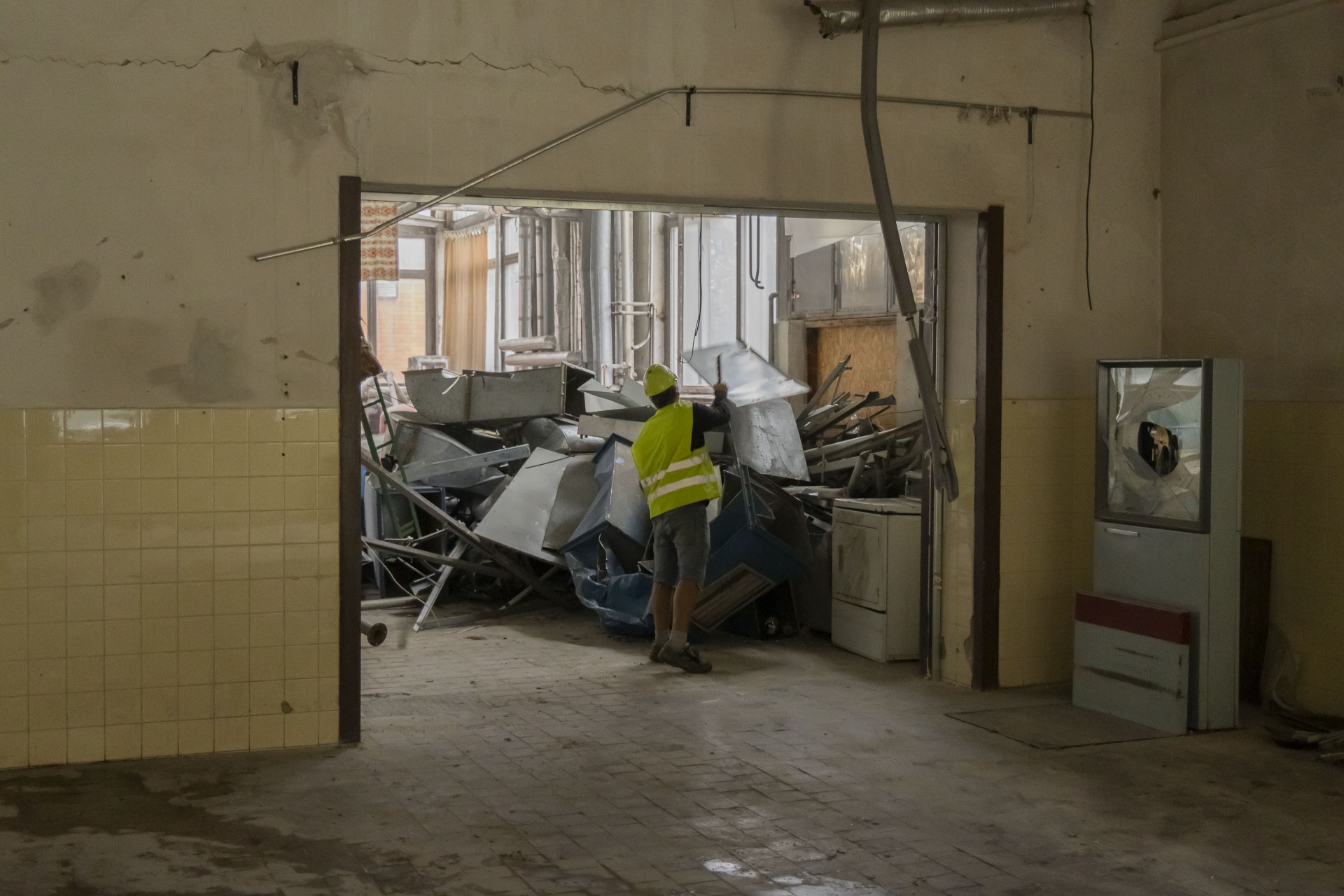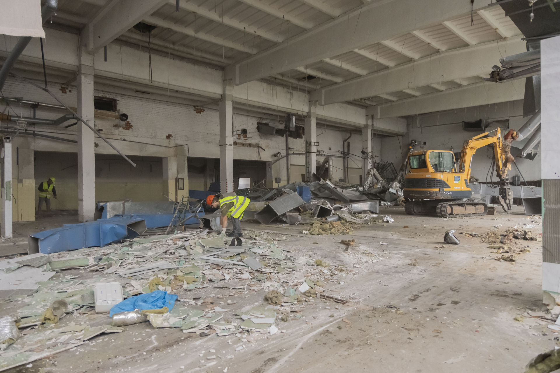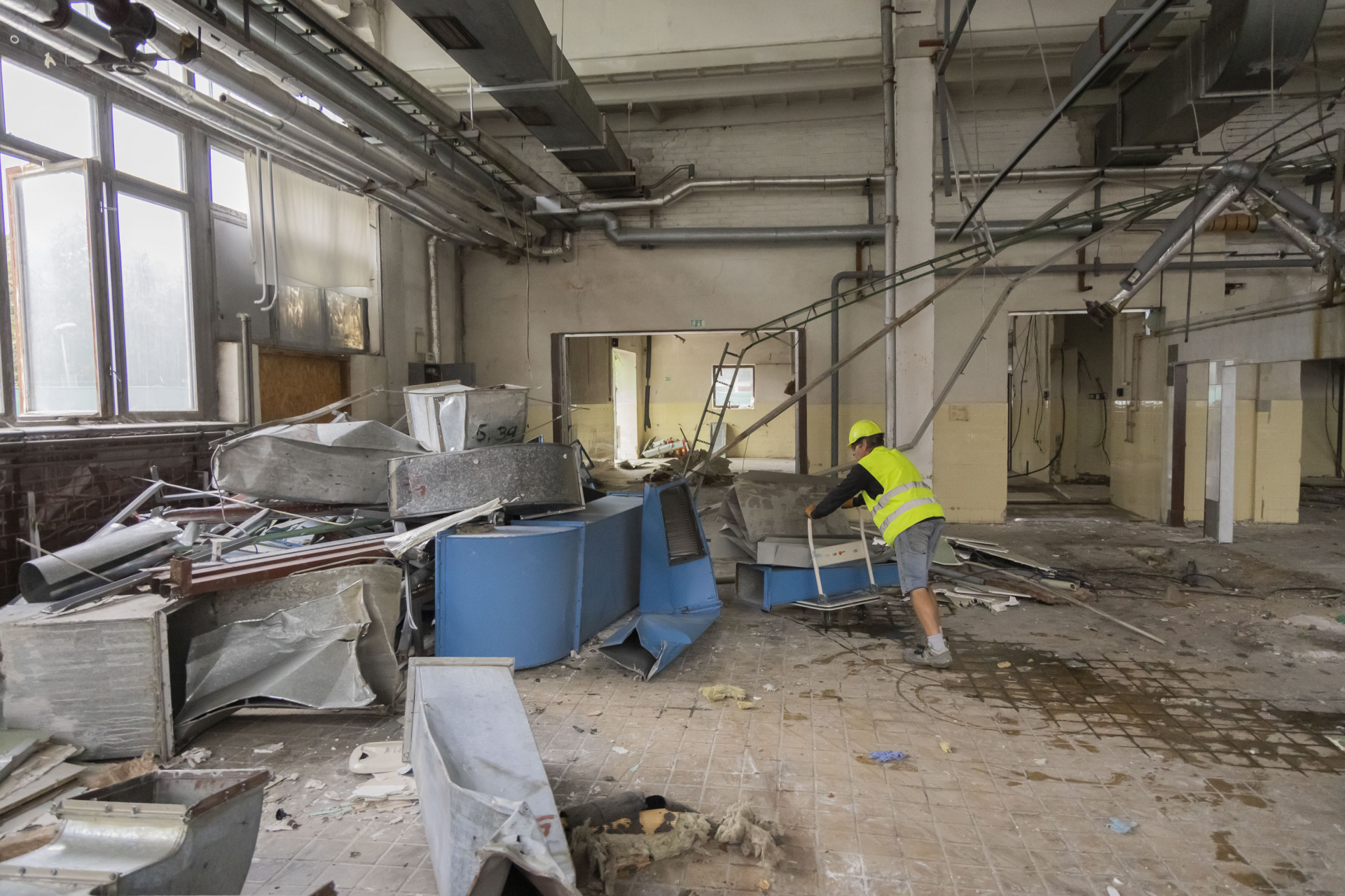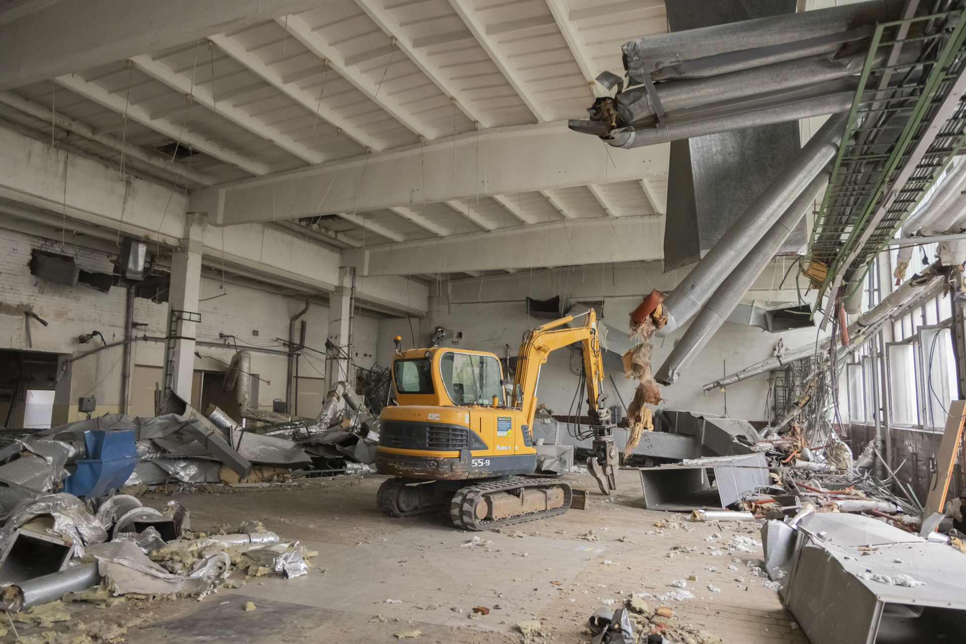 V areálu KNTB začala demolice staré prádelny. Podívejte se, jak práce probíhají