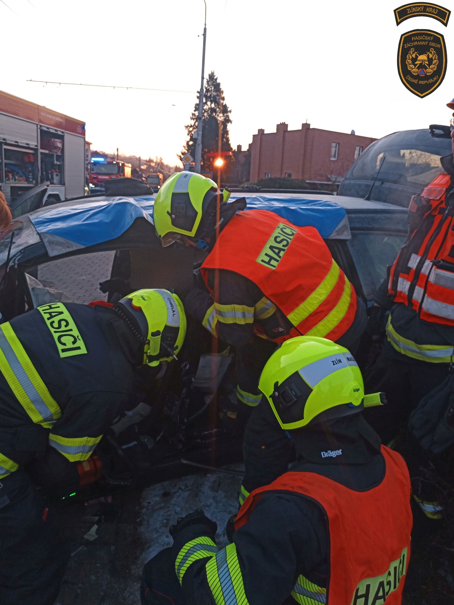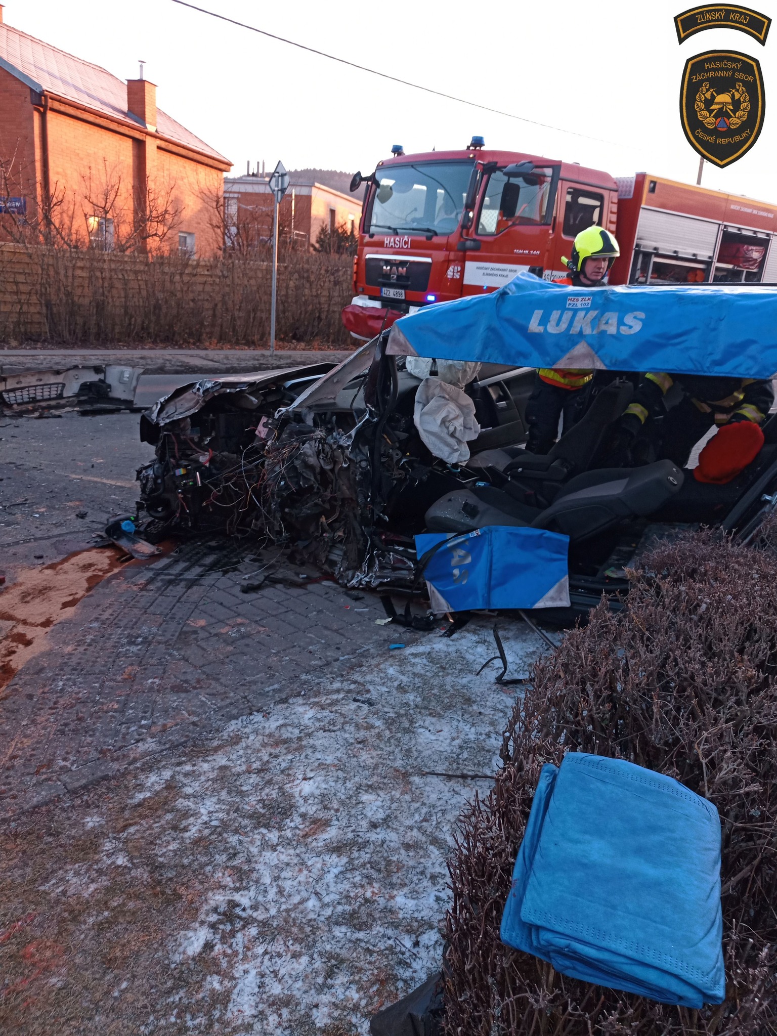 Po nárazu zůstal řidič osobáku ve vozidle zaklíněn. Hasiči ho následně šetrně vyprostili ze zdemolovaného vozidla ven a předali posádce zdravotnické záchranné služby.