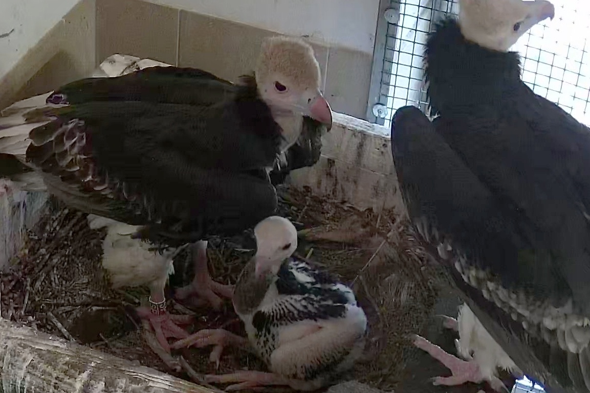 „I když rodiče projevovali o mládě zájem, zpočátku je řádně nekrmili. Rozhodli jsme se proto přistoupit k dokrmování a dvakrát denně jsme mláděti podávali drobné kousky masa a vnitřností. Po pěti dnech jsme veškerou péči přenechali supímu páru. Jejich péči jsme sledovali přes kamerový systém, prováděli jsme také kontrolní vážení,“ přiblížil odchov mláděte zoolog Václav Štraub. A teď malý sup chocholatý, který po svém vylíhnutí vážil sotva 100 gramů, přesahuje svou hmotností úctyhodné dva kilogramy.